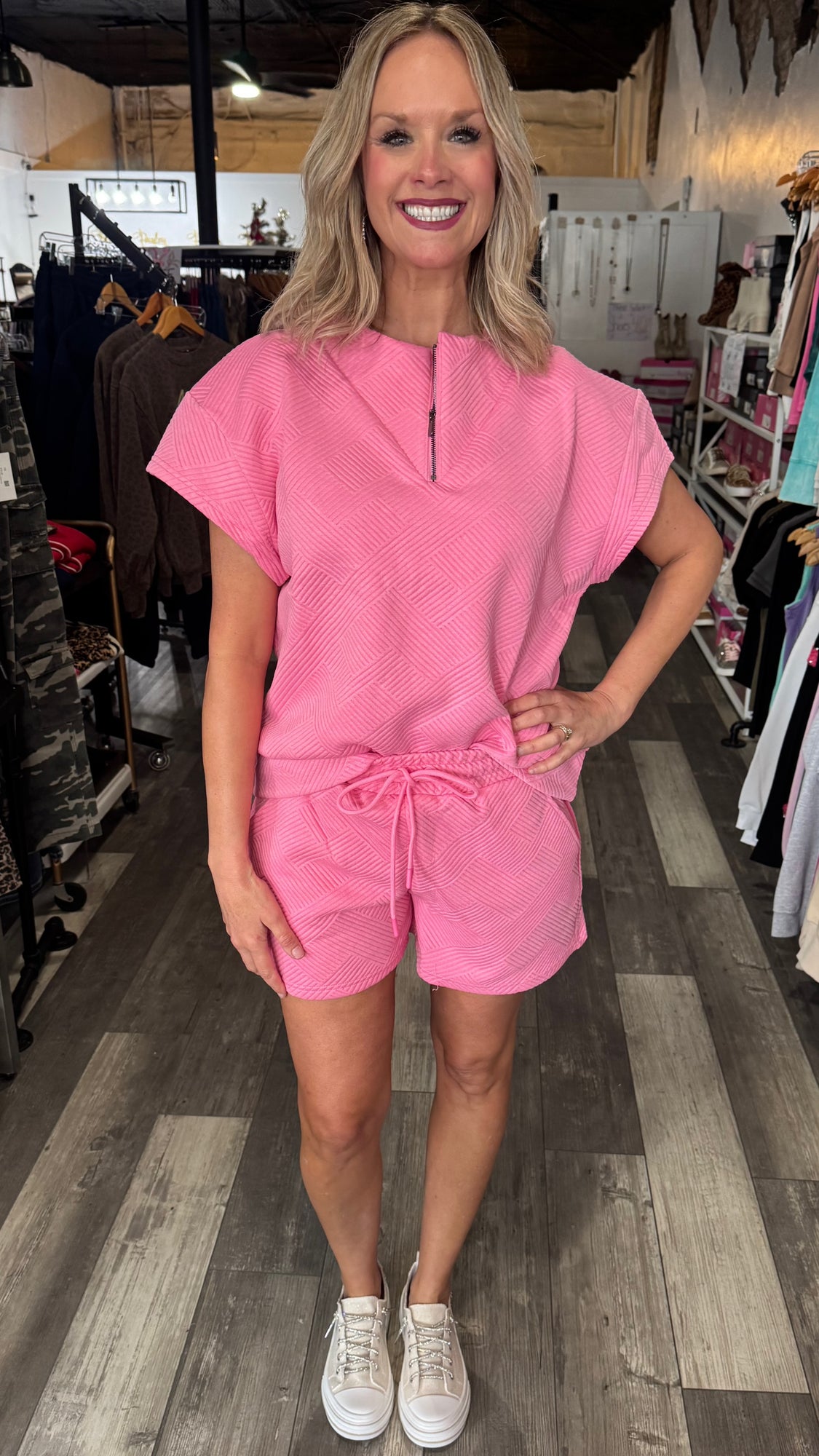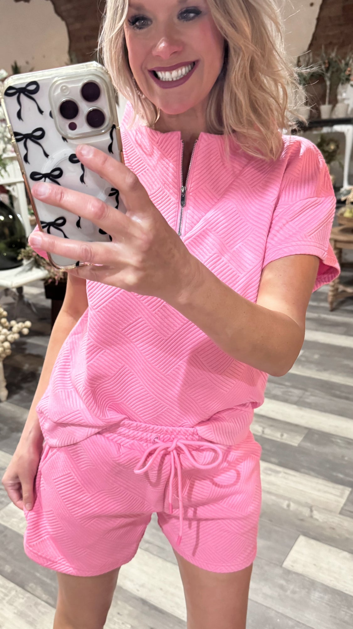 Pink Textured Short and Top Set