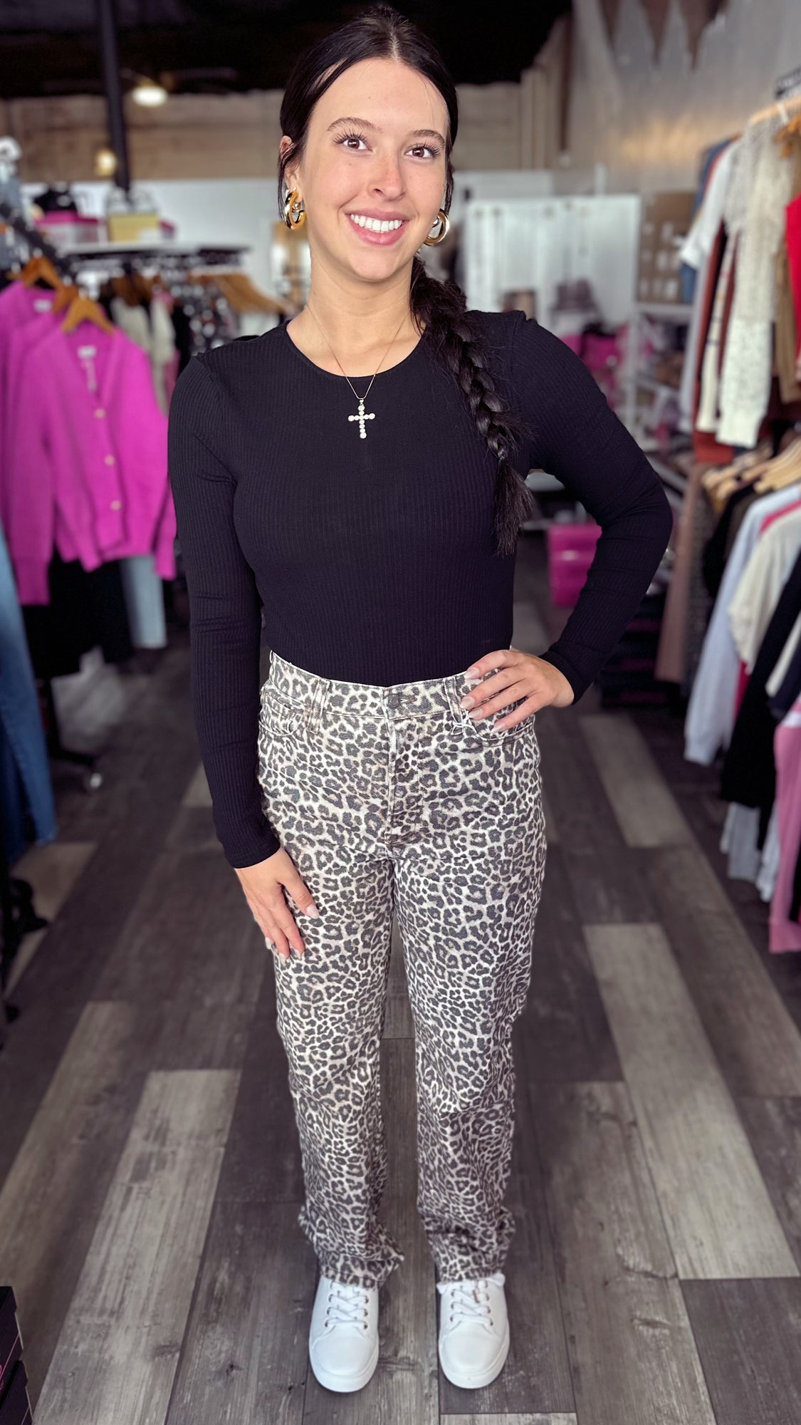 These Leopard Jeans by Cello have the high rise that we love and are a great length…perfect for the shorter girls and cute folded for the taller girls! These are super stretchy and run a bit big, we do suggesting sizing down.