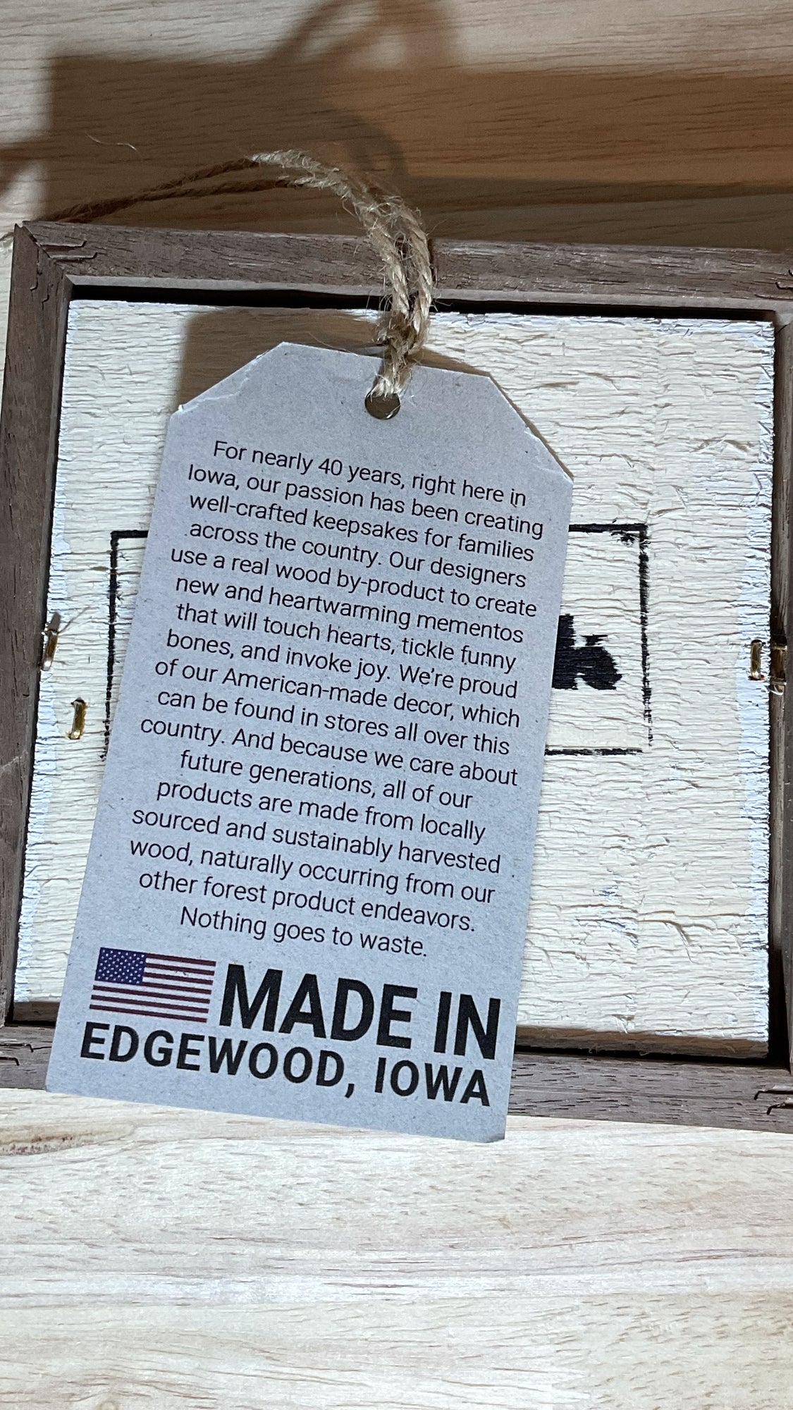 This signs are made by a company right here in Iowa! They are amazing quality and are absolutely adorable! They can sit or hang.