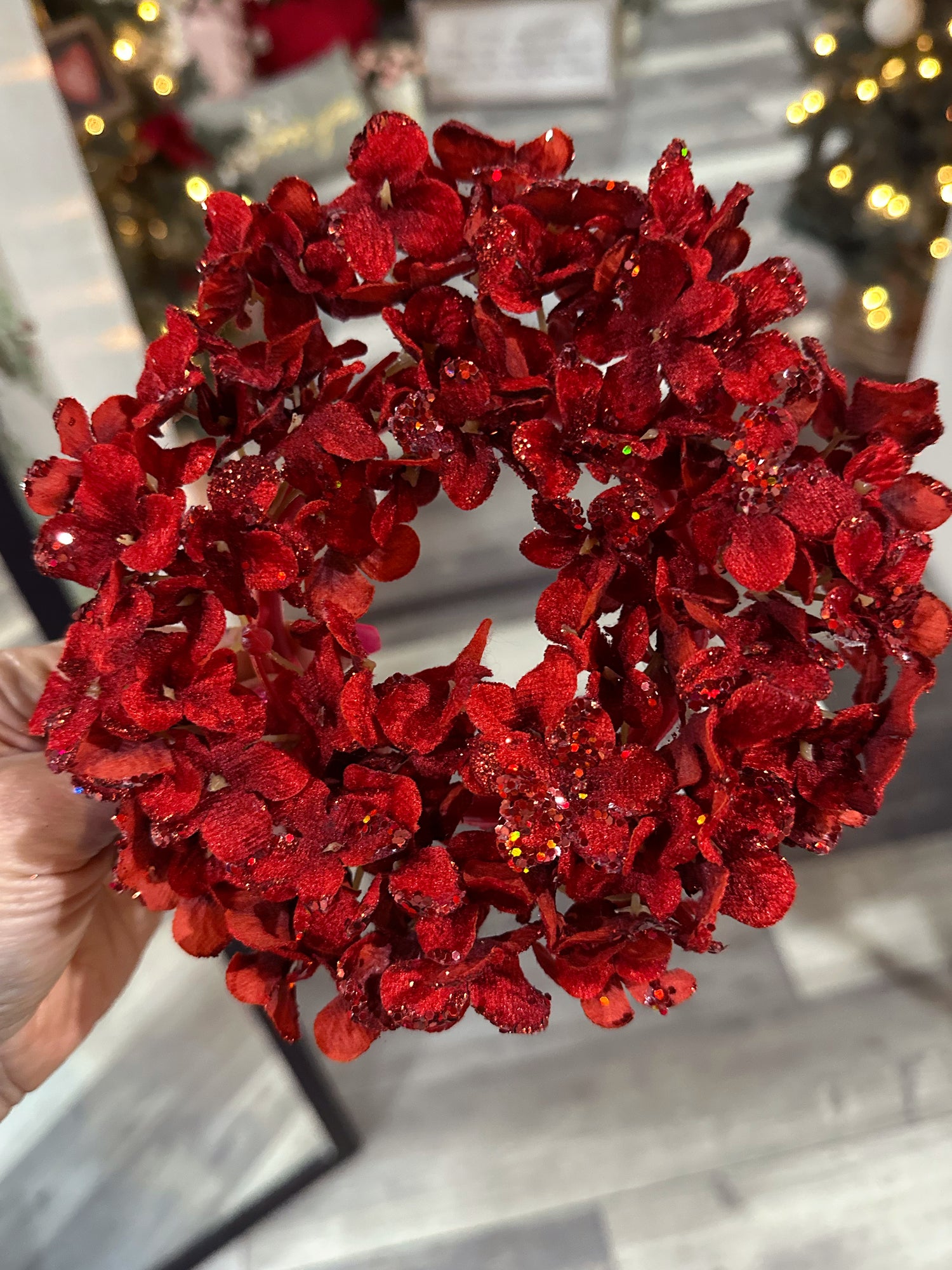 7” Red Glittered Floral Mini Wreath/Candle Ring