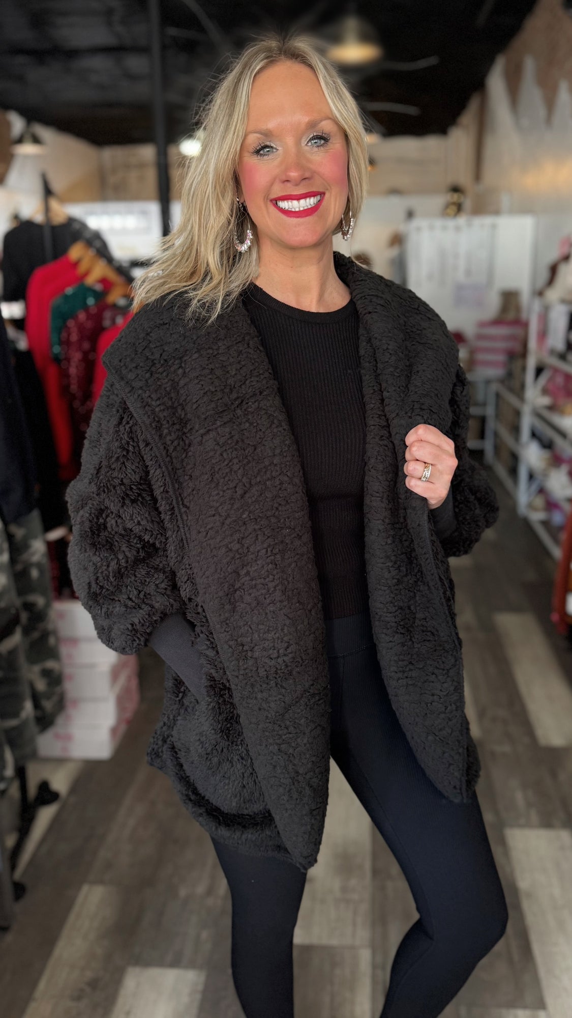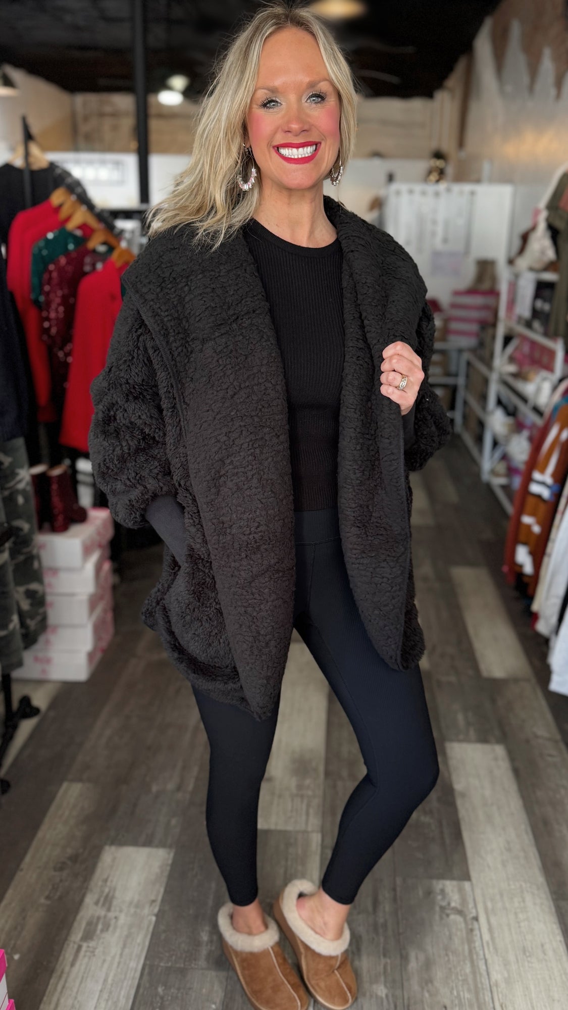These one size fits most Sherpa Cardigans are a best seller every year during the Holidays. They are the perfect gift for anyone on your list! SOO soft, cozy and adorable.