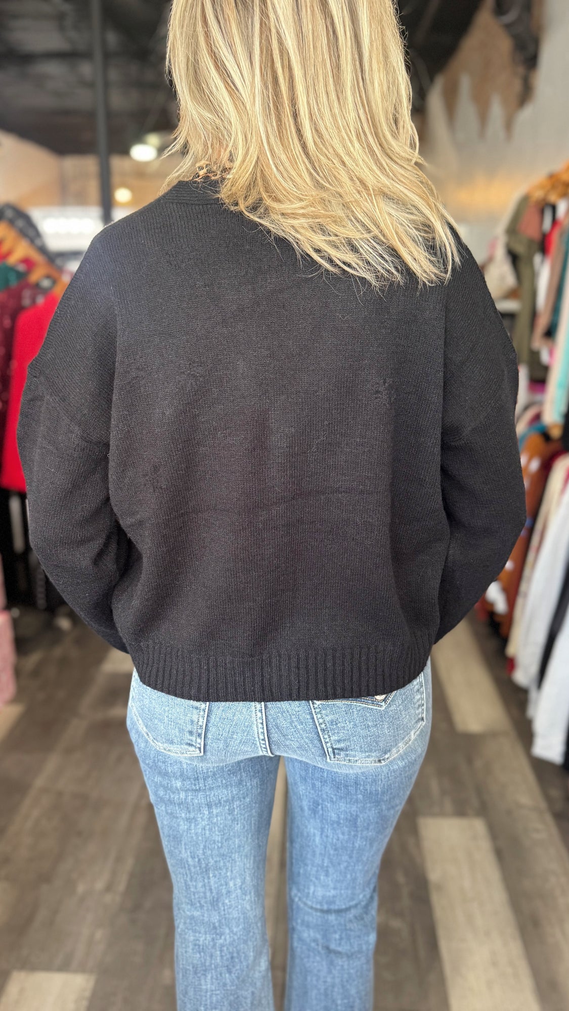 This is THE sweetest little cardigan, the jeweled buttons are the perfect touch of bling!  Fit is slightly oversized.