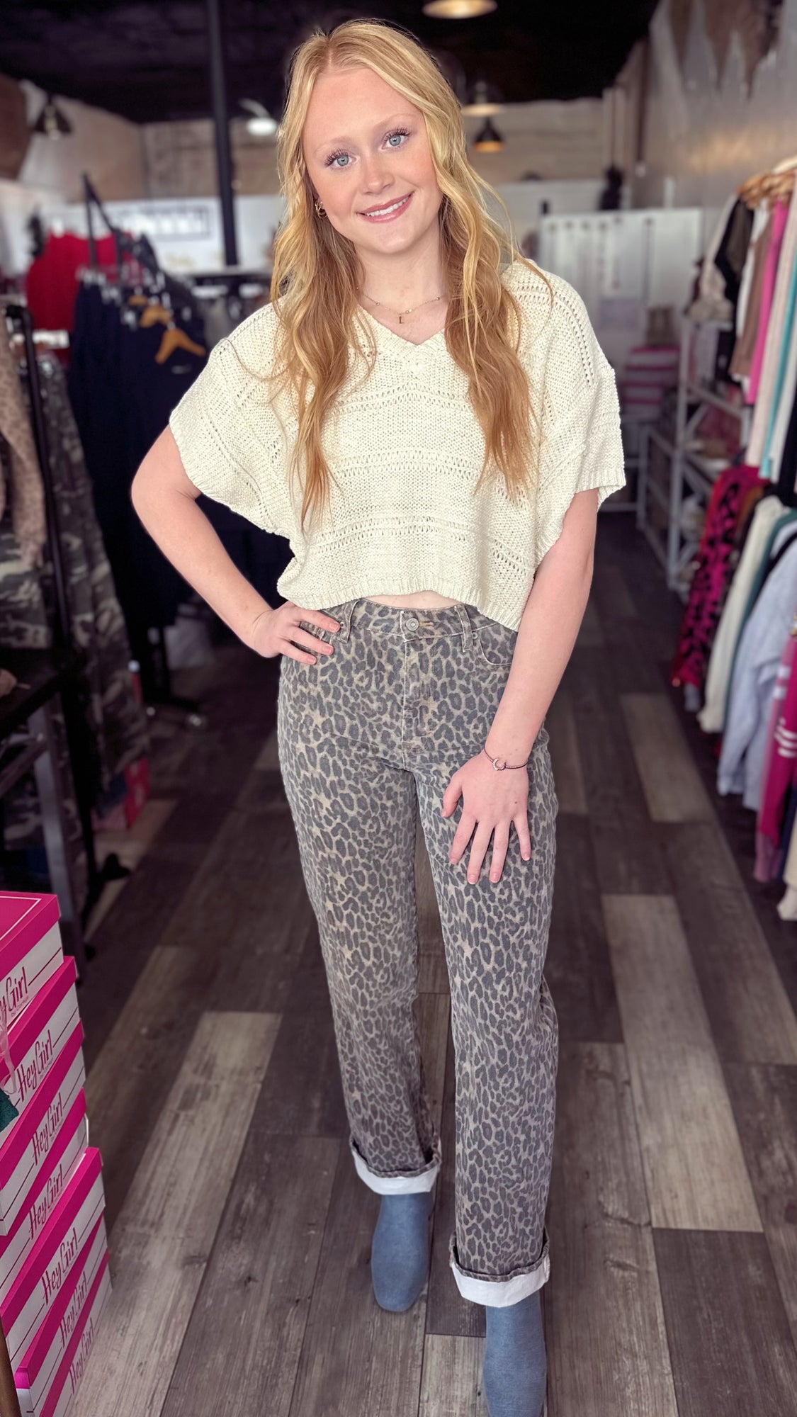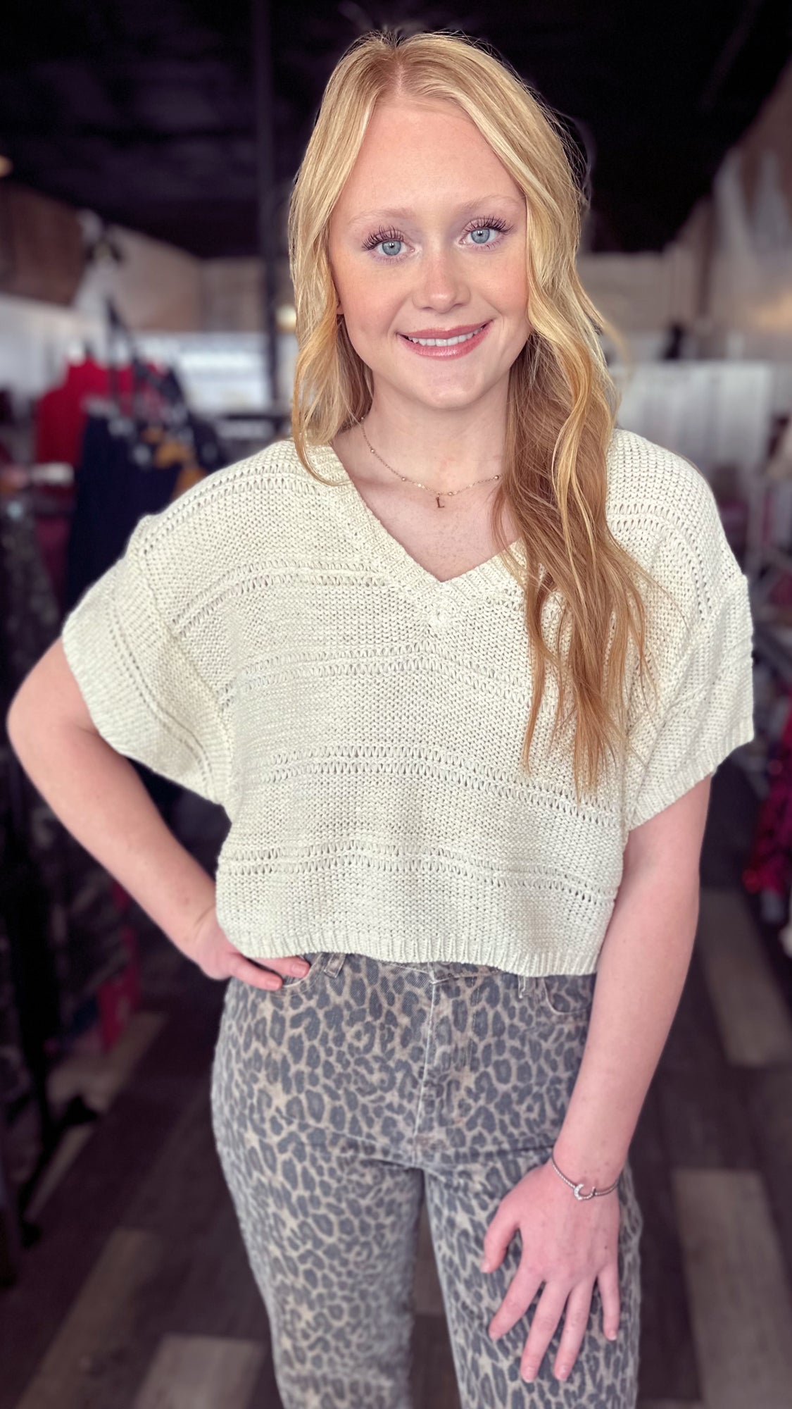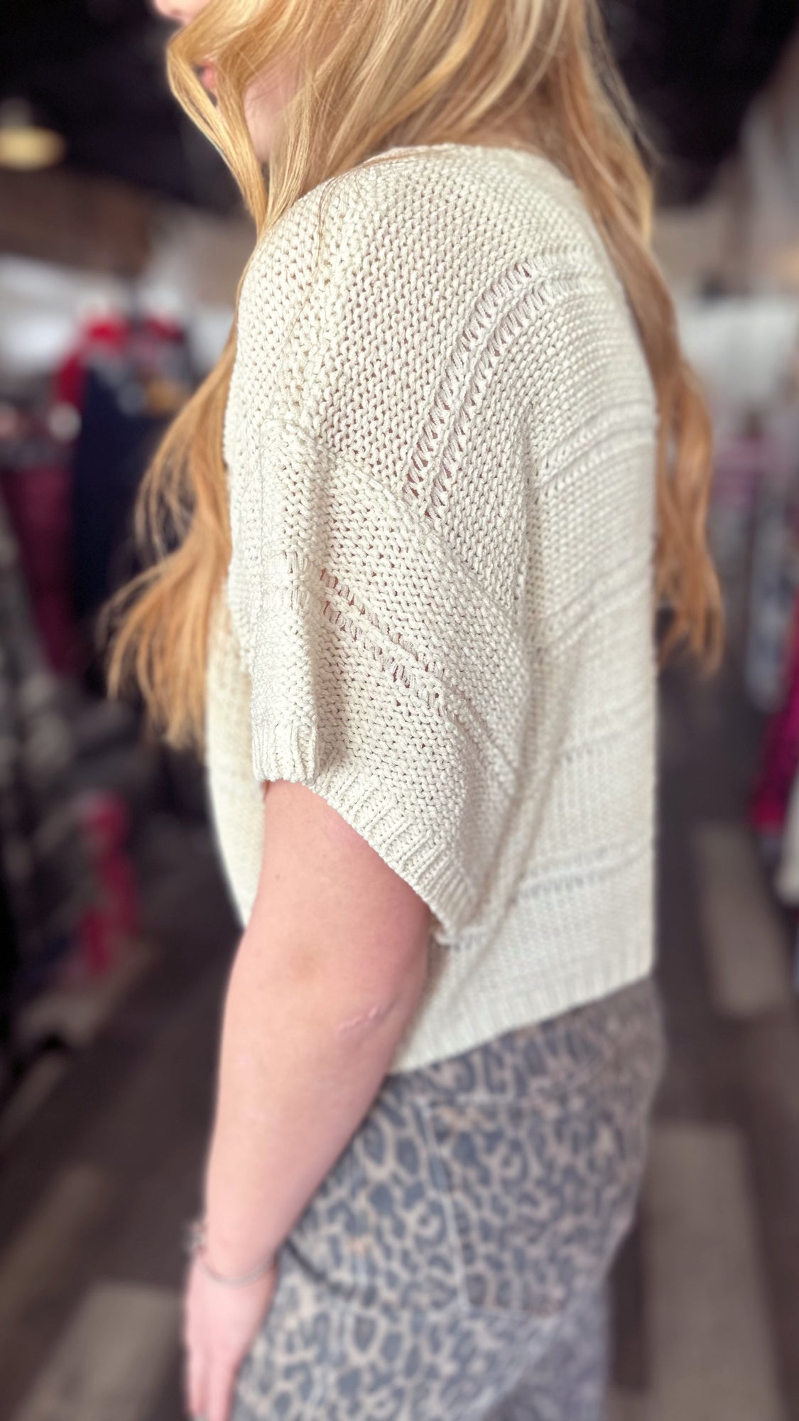 Super cute and versatile sweater! So cute on its own or layer it over one of our mesh long sleeve tops! Fit is true to size.