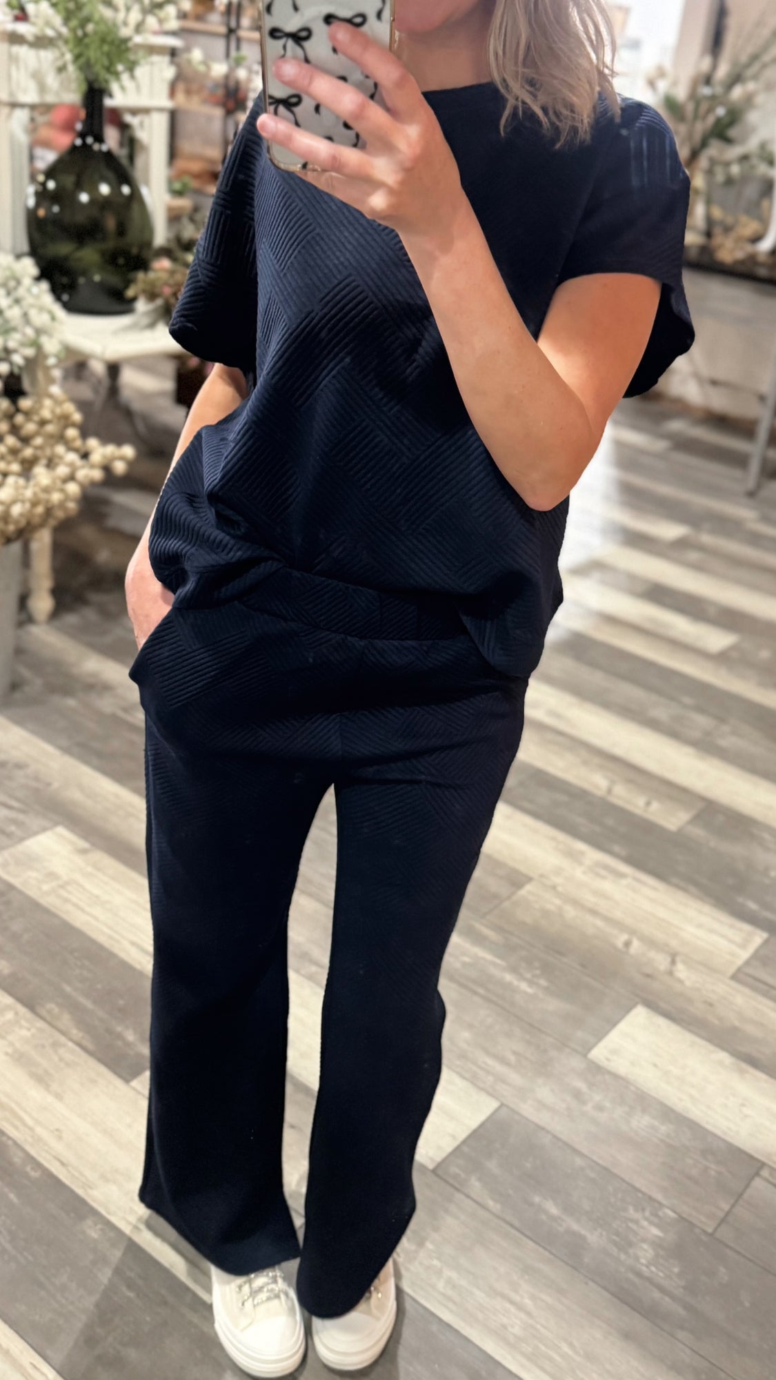 Navy Textured Pants and Top Set