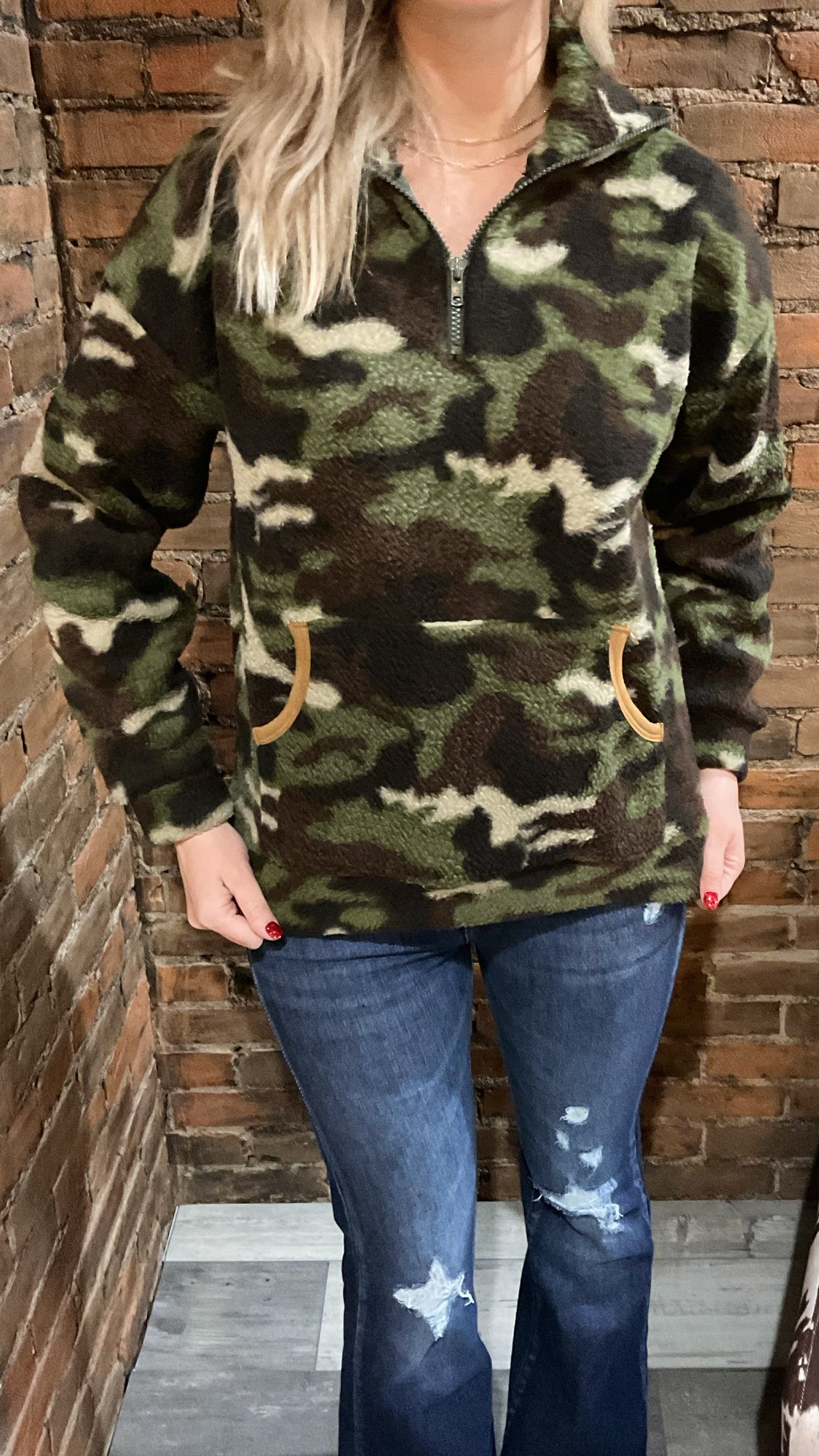 • Dark Camo Half Zip Up Sherpa Sweater
