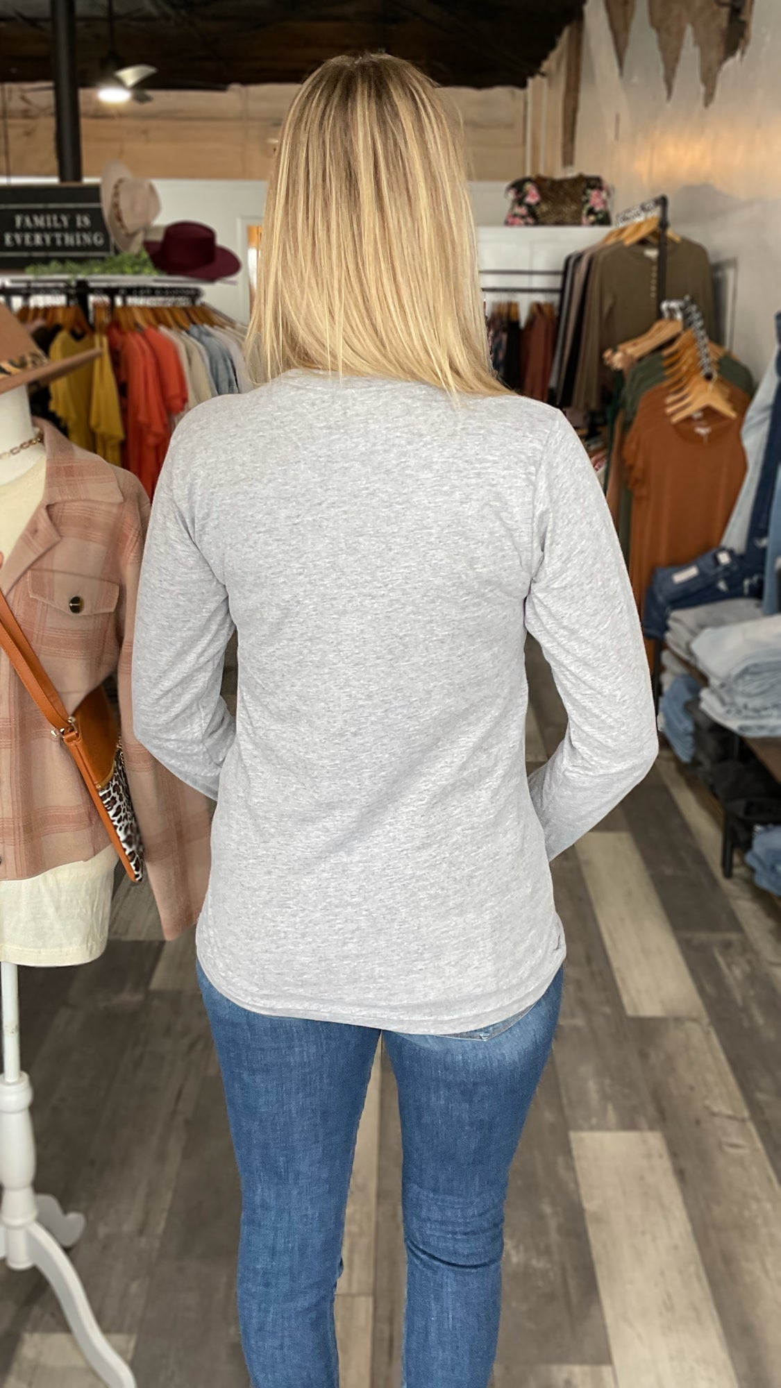 • Heather Grey Retro Football Long Sleeve Tee