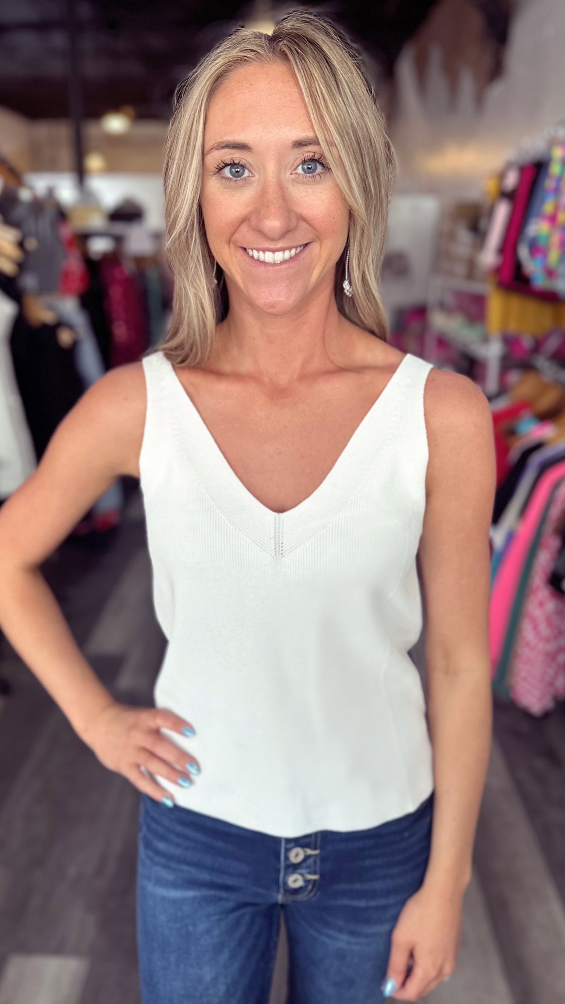Ivory V-Neck Knit Tank