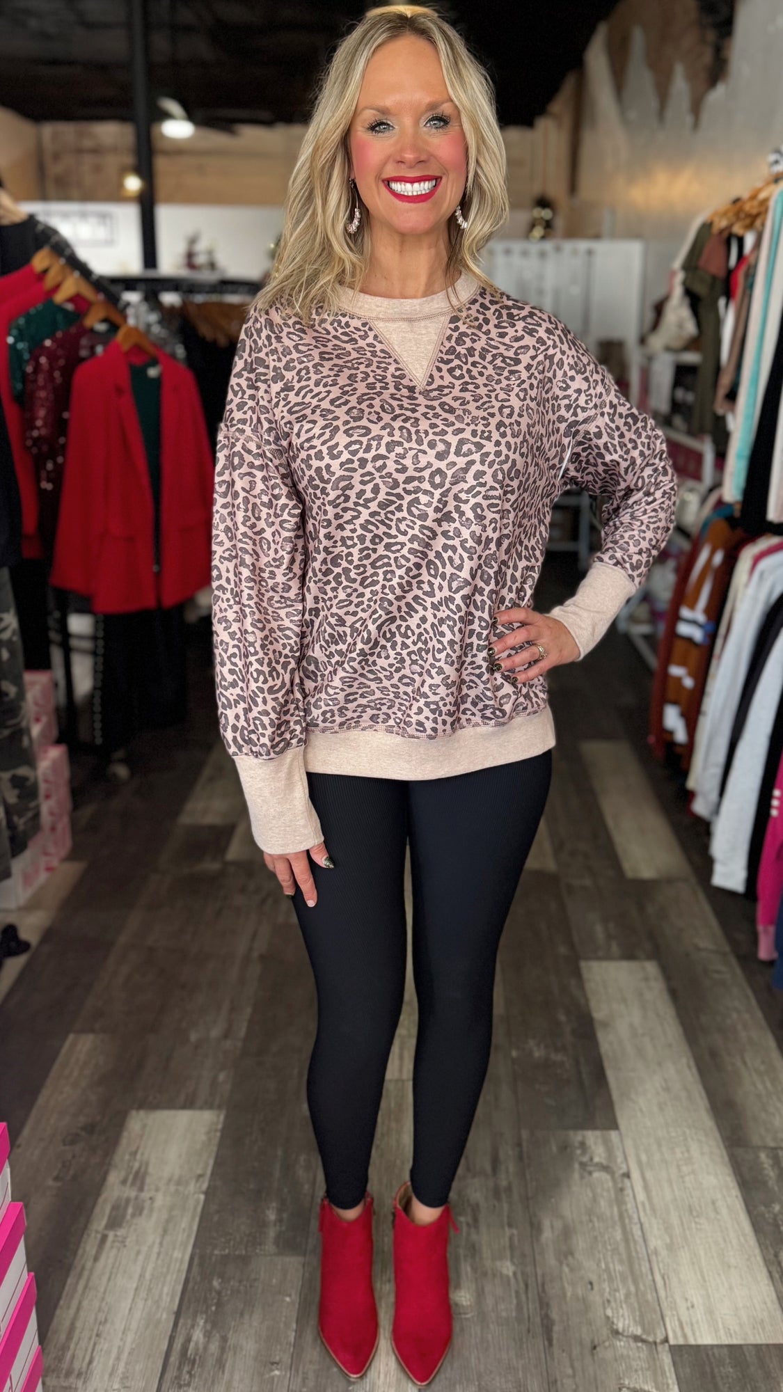 You can’t go wrong with leopard!! Just a comfy, cute, throw on and go top! Fit is true to size.
