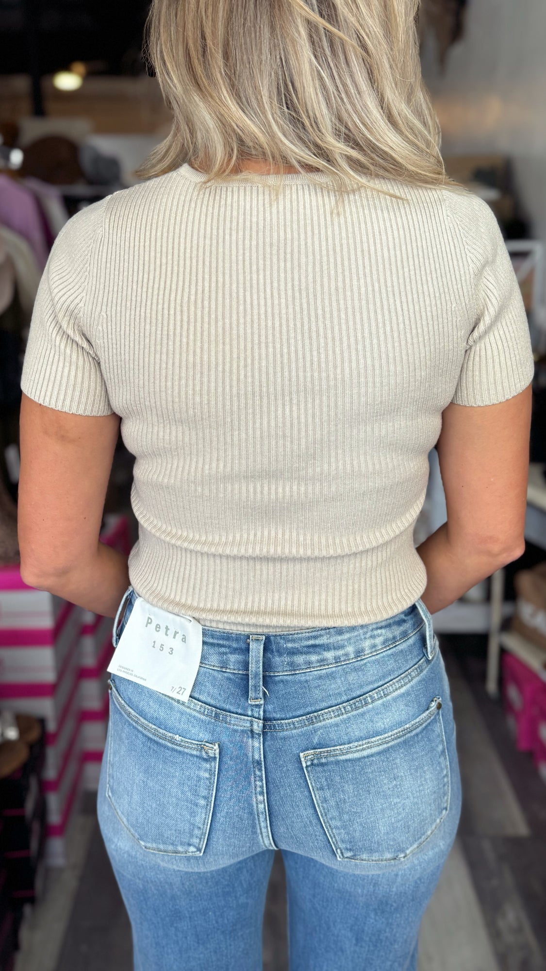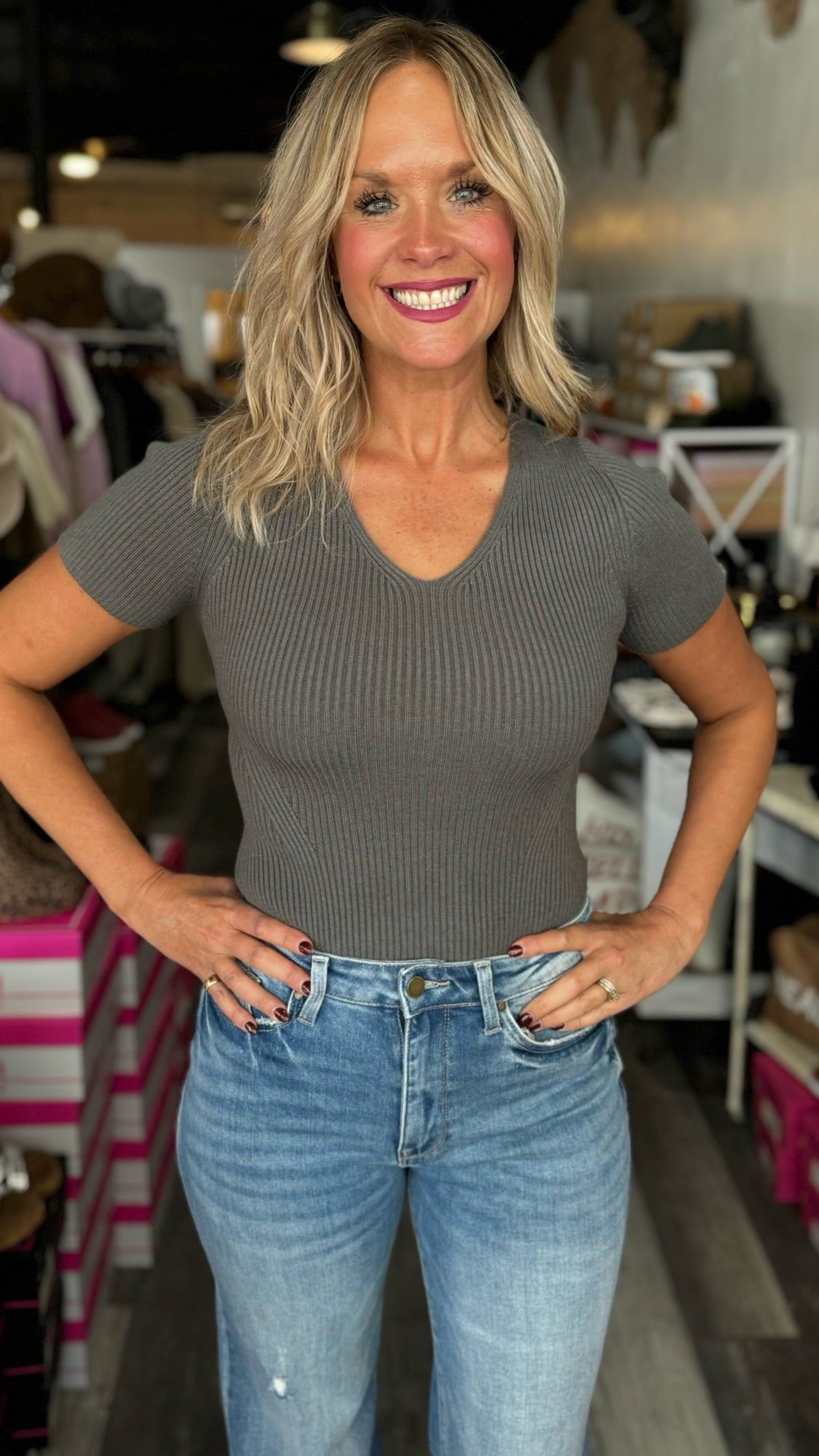 This ribbed sweater bodysuit is a good one! The ribbed texture is body slimming. We love both colors! Wear it by itself or as a layering piece.